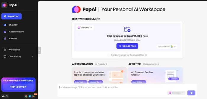 PopAi是与“万知”相同的 AI 工作站产品,支持多语言,集成了包括GPT-4o、GPT-4、DALLE·3、GPT-3.5、等多个前沿AI模型。