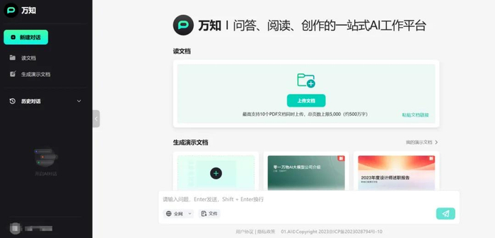“万知”可以做会议纪要、周报、写作助手,还可以解读财报、论文等各类文件,帮用户做 PPT。这一切,都可以登录一键解决,中英双语,完全免费。