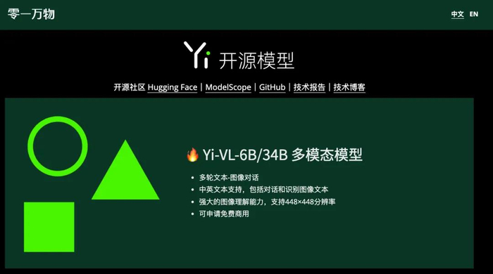 2023年11月,零一万物发布 Yi 系列模型,提供Yi-6B、Yi-34B两款开源大模型。