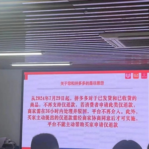 与此同时,一张图片也被疯传,大意是 “ 拼多多对于已发货和已收货的商品,不再支持仅退款,若消费者申请此类仅退款,商家需在36小时内处理并驳回,平台不再介入。”
