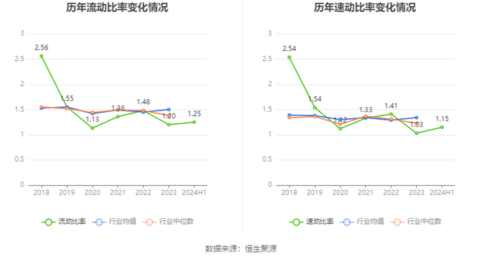 2024年上半年,公司流动比率为1.25,速动比率为1.15。
