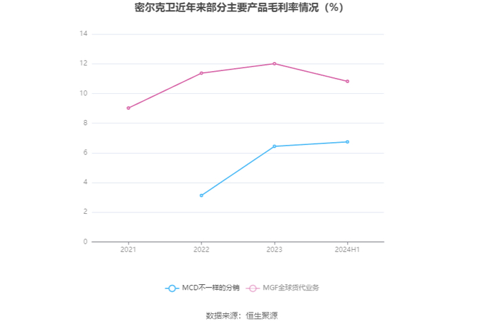分产品看,MCD不一样的分销、MGF全球货代业务、MWT区域内贸交付2024年上半年毛利率分别为6.74%、10.82%、20.17%。