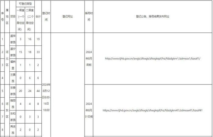河北区、河东区、南开区公租房8月12日开始登记,东丽区、津南区、北辰区、西青区公租房将于9月9日开始登记。