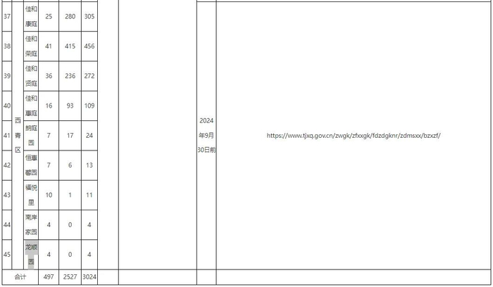 近日,天津市住房和城乡建设委员会发布《2024年三季度公租房公开登记摇号计划》,共3024套房源,其中一居室497套,二居室2527套,涉及河北区、河东区、南开区、东丽区、津南区、北辰区、西青区。