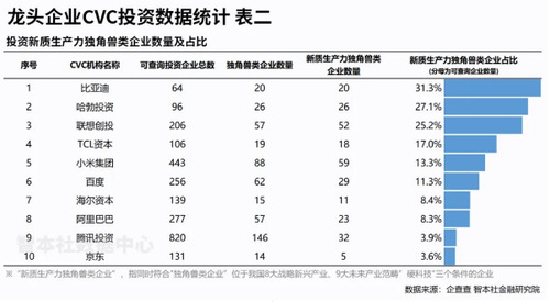 如何推动广大硬科技中小企业更快速地成长为独角兽?根据智本社金融研究院最新统计数据显示,以比亚迪、华为、联想为代表的龙头企业,通过产投结合的方式扶持中小企业成长壮大,已成为培育独角兽的重要力量,它们每投资5家企业,至少1家成长为独角兽类企业,其中还有不少是处于新兴产业和未来产业的“新质独角兽”。