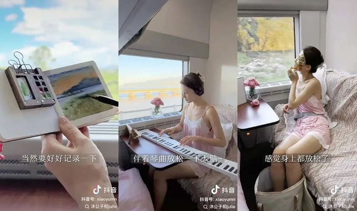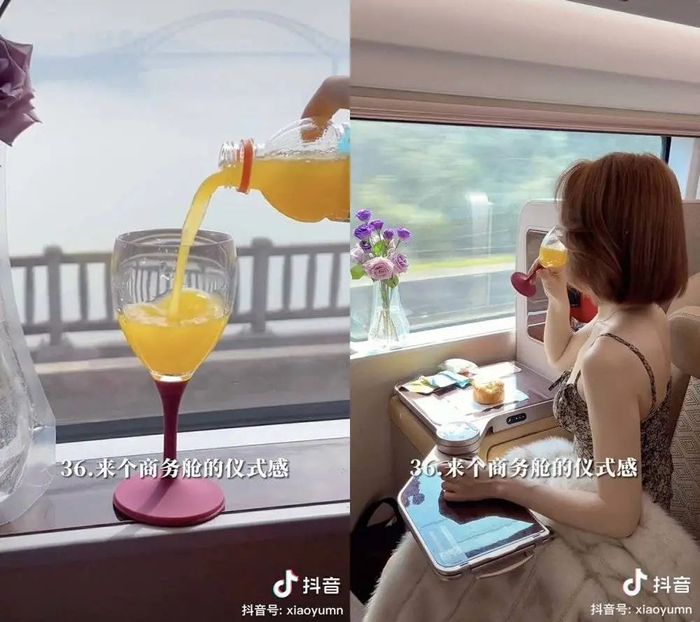 在抖音和小红书,“精致女生坐高铁”系列已经变成了大伙群嘲的对象。有人把它当作视觉解压asmr,有人把它当作抽象行为艺术,但更多人把它视为一种低级的带货视频。
