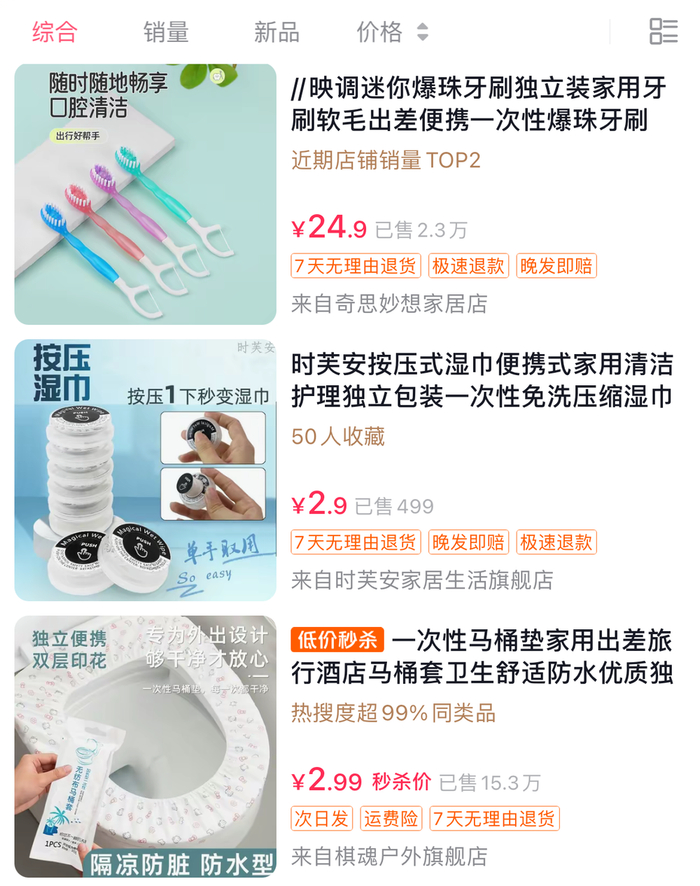 同样,即便高铁厕所里有专用洗手液,她们仍然会使用同款的花朵型“香皂片”,以及便携款爆珠牙刷。上一次见到这种廉价无用的小玩意儿,还是在小学学校门口的文具店里。