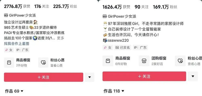 根据对5位出镜的主播统计,其中有2位来自同一家MCN公司“GirlPower少女派”,其他3位在简介里标注了自己没有签约公司,更有可能是同一赛道的竞争对手。