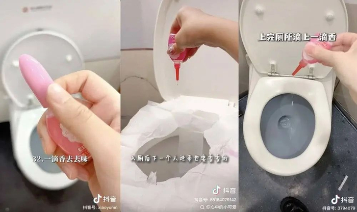 上完厕所之后给马桶滴一滴,厕所顿时充满花香味,这样就能掩盖如厕后的异味。