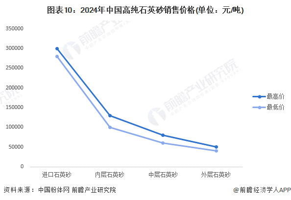 从中国粉体网高纯石英砂的报价来看,2024年,进口石英砂的价格是国内石英砂平均价格的两倍以上。原因首先是中国高纯石英砂特别是高端高纯石英砂有一定的进口依赖,其次是进口石英砂纯度和品质高于国内。
