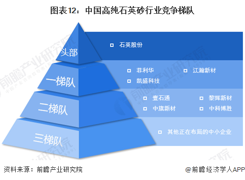 从竞争梯队来看,中国高纯石英砂行业头部企业为产能最高的石英股份;一梯队企业为布局高纯石英砂领域时间较早、有一定生产能力的上市企业,包括菲利华、凯盛科技、江瀚新材;二梯队企业为技术落地后正在规划高纯石英砂产产线建设的上市企业(壹石通、中旗新材)和依靠上市企业投资发展的布局较早中小企业(黎辉新材、中科博胜);三梯队企业为其他正在布局的高纯石英砂行内中小企业。
