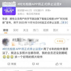 在时光相册App停止运营的词条下,有用户评论表示遗憾及担忧