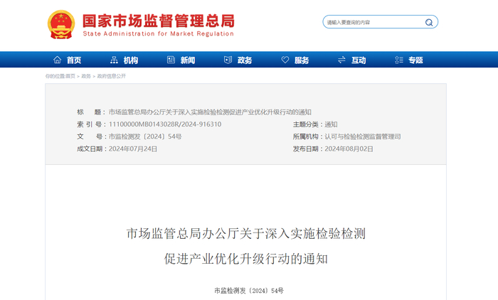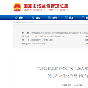 市场监管总局办公厅关于深入实施检验检测促进产业优化升级行动的通知