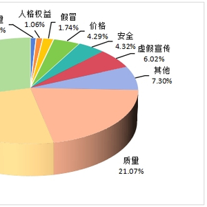 在所有投诉中,商品类投诉为356,527件,占总投诉量的45.55%,与去年同期相比,比重下降7.75个百分点;服务类投诉为331,934件,占总投诉量的42.4%,比重下降2.18个百分点;其他类投诉为94,333件,占总投诉数量的12.05%。