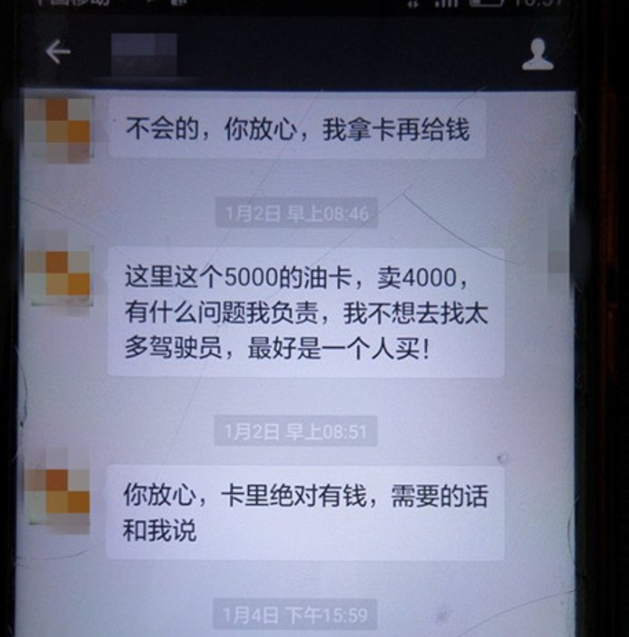 不久后,丁先生也遭遇了同样的骗局,同样的优惠信息,同样的语术。经过交谈,丁先生支付了4000元购买低价加油卡,结果付款后不仅没收到加油卡,连售卡人也失联了。发现被骗后,丁先生也报了案。