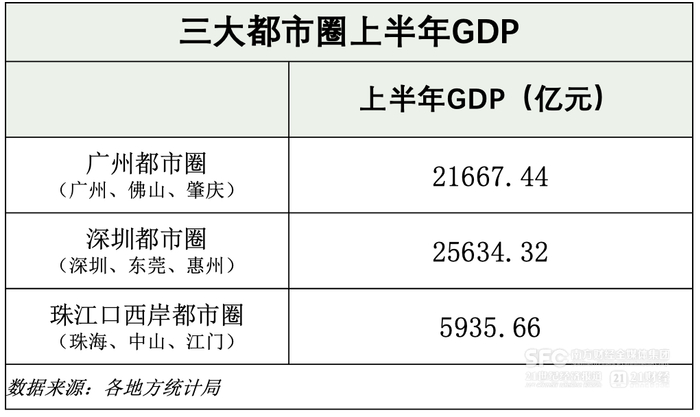 珠三角包括广州、深圳以及珠江口西岸三大都市圈。从都市圈的维度观察上半年珠三角经济,能够更加直观地看见城市协同发展的态势。