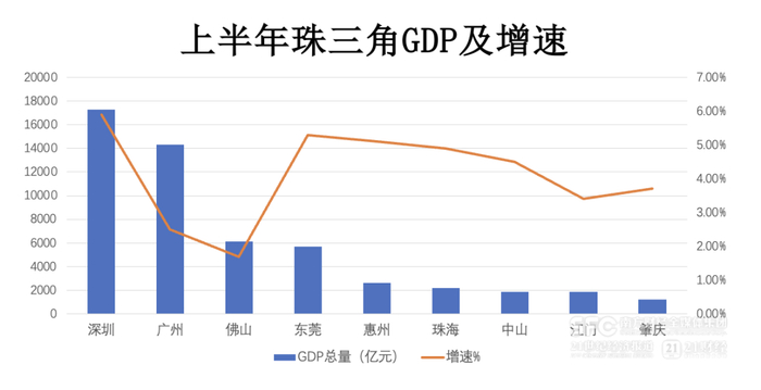 相比之下,广州都市圈则面对一定的增长压力,广州、佛山、肇庆三个都市圈内城市上半年的GDP增速均落后于全省。