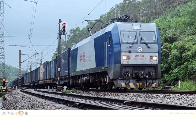 一列满载集装箱的火车穿行在西部陆海新通道上(8月2日摄)。截至8月2日,今年西部陆海新通道铁海联运班列运输货物突破50万标箱,为历史同期最高水平。《西部陆海新通道总体规划》颁布实施5年来,西部陆海新通道铁海联运班列累计运输货物超310万标箱。
