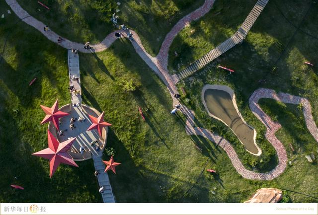 8月1日,游客在宁夏固原市隆德县城关镇杨家店村游玩(无人机照片)。近年来,宁夏固原市隆德县城关镇杨家店村依托六盘山红色旅游资源,在保留原住居民住房、生产、生活格局的基础上,整合优化村落资源,打造民宿和农家乐,发展乡村旅游,让村民参与经营和服务,共享文旅产业发展红利,助力乡村振兴。