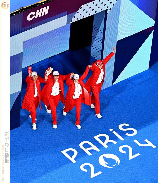 8月1日,中国队选手赛前入场。当日,在巴黎奥运会游泳项目女子4x200米自由泳接力决赛中,澳大利亚队、美国队分获冠、亚军,中国队获得季军。