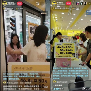 但在恩施、武汉、东莞等地的部分门店则将直播镜头架在收银台,直接对着正在买单的顾客,画面底部放置广告牌,偶尔有店员解说卖货,看客可以点击链接下单。
