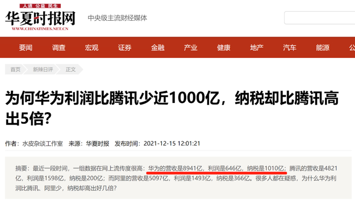 前两年网上流传一份民企纳税排名数据,华为的营收是8941亿,纳税是1010亿。如果把为华为服务下游产业、服务商带来的纳税算在一起,纳税总额肯定远超1000亿。