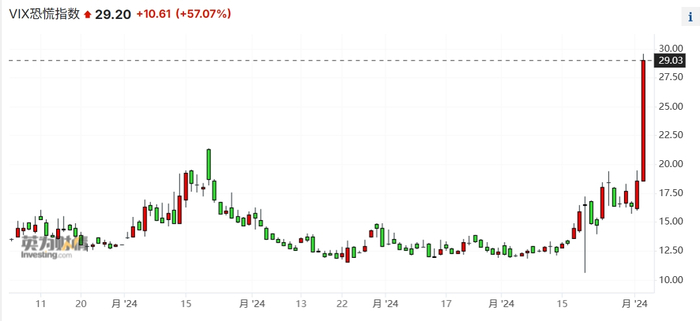 在7月非农就业数据弱于预期后,引发了人们对美国经济可能陷入衰退的担忧,华尔街恐慌指数VIX大涨50%,触及2023年3月以来的最高水平。
