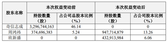 周鸿祎由直接持有5.24%股权和通过奇信志成间接持有8.02%股权,变更为直接持有13.26%股权,为上市公司第一大股东。