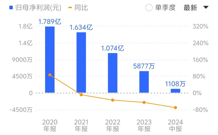 今年二季度,公司单季仅实现净利润141.4万元,而整个上半年也仅实现净利润,这也刷新了公司自2014年以来的半年报业绩新低。来源:同花顺集采致核心产品收入骤降