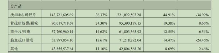 由于公司产品相对集中,沃华医药表示,沃华心可舒片、骨疏康胶囊/颗粒、荷丹片/胶囊、脑血疏口服液系公司的主导产品,其生产及销售状况直接决定了公司的收入和盈利水平,上述产品生产、销售的异常波动将对本公司经营业绩产生较大的影响。