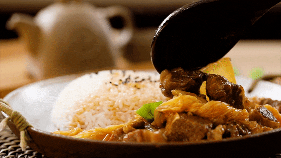 马跃青分析,盖浇饭通常由菜肴和米饭两部分组成,其中的菜肴往往香味浓郁、非常下饭。