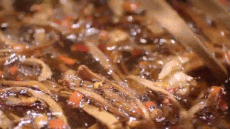 不同于一般以大火油炸简单粗暴的催出鸡枞香的方式,先是加热,让鸡枞释放水份后再行文火焙干。过程中,油温不断升高,鸡枞的鲜香迁移到热油中,5、6个小时后便成了油鸡枞这等奇鲜的美味。期间,须得依靠滇菜大师用老道的功力,保证火力时刻匹配鸡枞的状态,使得鸡枞出鲜香而不出焦糊味,再加上花椒、辣椒的增香,激发出完整的香气,还原出独一无二的油鸡枞滋味。
