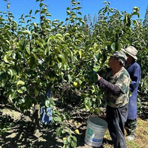 除了翠冠梨,今年果园内还种植了新品种“早生新水”,小巧的个头汁水充盈,果肉偏嫩,甜度也高。此外,绿黄的“雪青”梨也颇受食客喜爱,果形周正、圆润饱满,吃口更为清甜软糯。在售价方面,翠冠梨与“雪青”的售价均为16元/千克,“早生新水”为20元/千克。