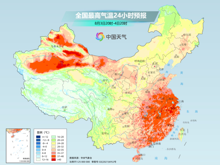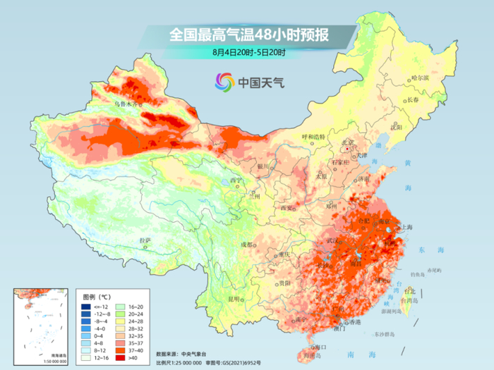 预计未来10天,黄淮南部、江淮、江汉、江南北部及新疆盆地地区、内蒙古西部等地有4~8天日最高气温在35~39℃的高温天气,其中苏皖南部、江西东北部、浙江北部等地局地日最高气温有40~42℃,接近或突破历史同期极值。