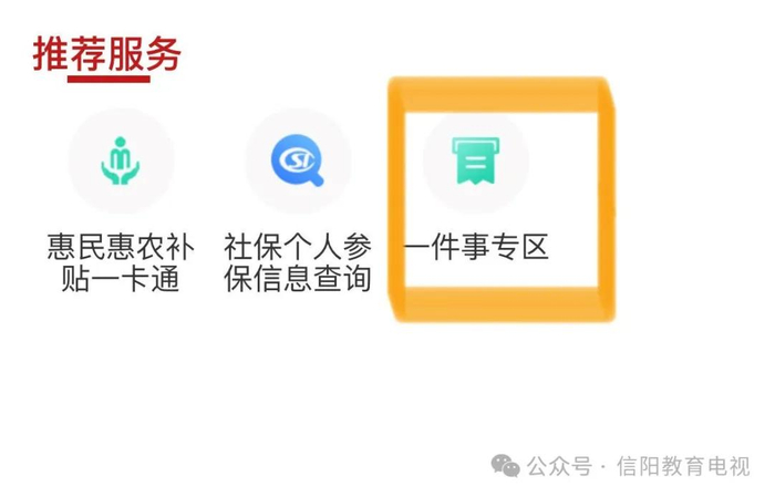 2.登录后,在“推荐服务”页,手指向左滑动,进入“推荐服务”第二页,点击进入“一件事专区”。