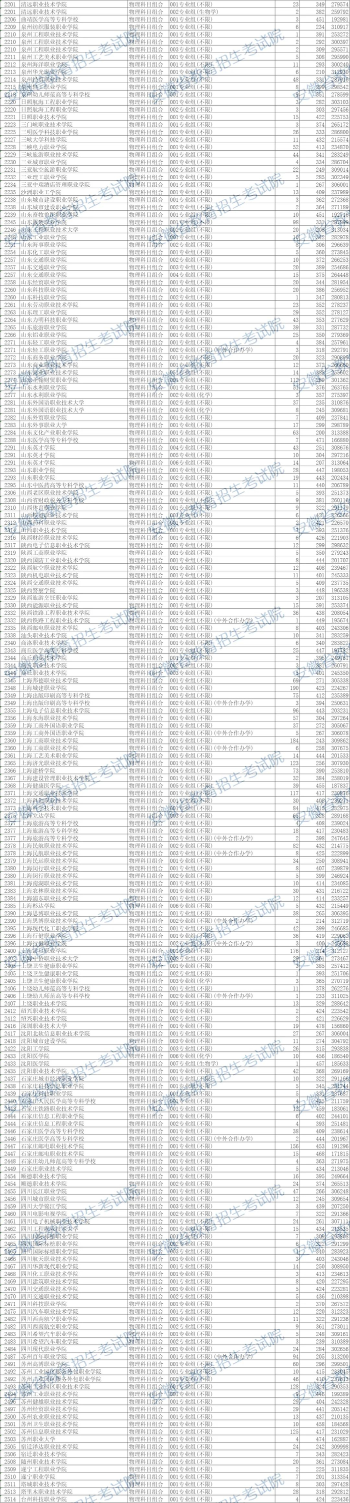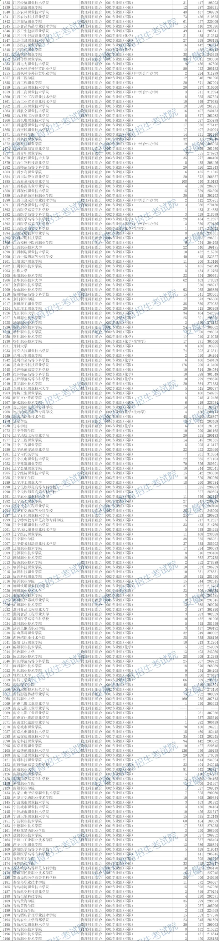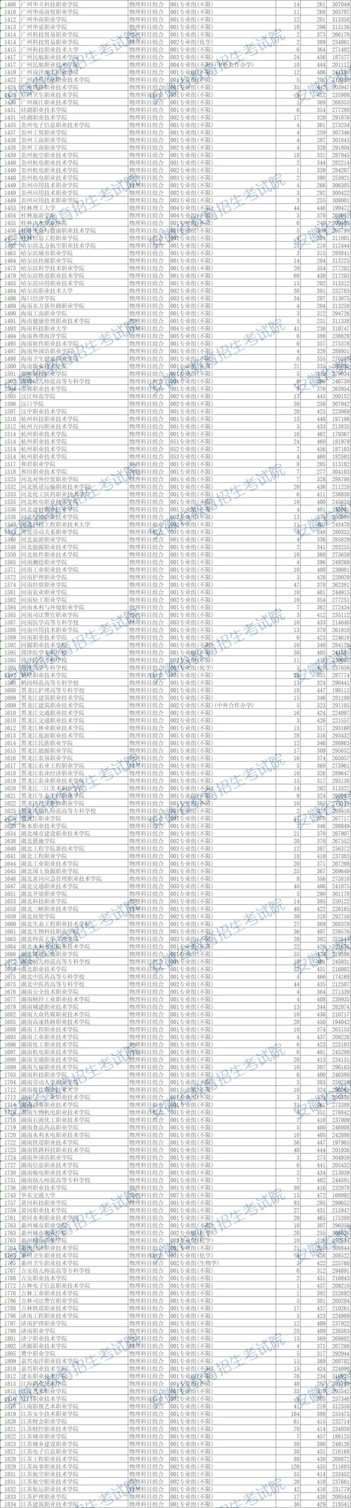 安徽省2024年普通高校招生普通高职(专科)批院校投档分数及名次(物理科目组合)