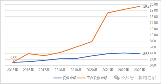 关于这一点,在平安银行这一头部机构的历年数据中已体现得极为明显。从2015年至2023年,平安银行的汽车贷款余额从786.35亿元增长到3024.75亿元、增至3.85倍;而该项业务的不良贷款余额则从2.20亿元增至42.65亿元、增长达19.39倍!