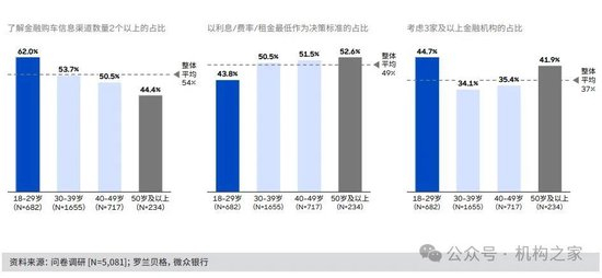 利润的下滑,既有银行业系统性的净息差缩小问题;也有当前供求关系改变所导致的市场性质转变;特别是当下的消费者对未来收入保障的不确定性,更是加剧了这一点。据《2024年中国汽车金融报告》所列调查结果,目前潜在的汽车金融客户中,除了18-29岁年龄段,30岁以上的人群中将利息/费率/租金的最低做为决策标准的占比均在50%以上;同时,“货比三家”、以期选择更低费率的客户占比,在各个年龄段中均在三分之一以上,整体平均达到37%。