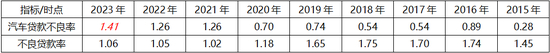 同时,在该行整体不良贷款率由2016年的高点1.74%降至2023年末的1.06%时,该项业务的不良贷款率却逆向而行、由0.28%增至1.41%。而这,还只是不良贷款率,如果考虑平安银行未公布的关注贷款率及汽车金融业务风险爆发的延后性(贷款期限更长),一旦后续若干年内消费者的收入水平未能向好,则汽车金融业务的风险已不容忽视!