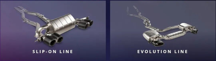 Evolution Line排气系统通常基于Slip-on排气系统制造并在此基础上添加中段管路。除了提供更高的动力和扭矩及轻量化与声浪外,Evolution高性能排气系统通常还包括排气中段的一系列管路设计,这些连接管会配有比原厂直径更大的管路和铸造钛合金法兰。
