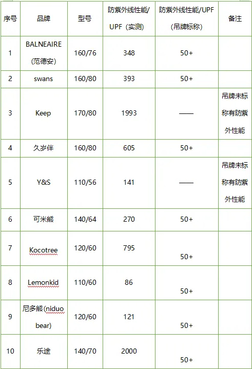 (三)防紫外线性能总体情况良好。