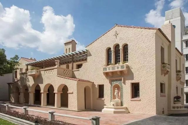 永福路52号原为布哈德住宅,1932年建造,由哈沙德洋行设计,钢筋混凝土结构,是典型的西班牙式建筑。立面为鱼鳞状水泥拉毛墙面,平缓的筒瓦坡顶,有地下室。南立面底层入口设连续半圆拱券门廊;2层露台设有棚架。底层客厅有一对螺旋形石柱,顶棚为木框吊顶。
