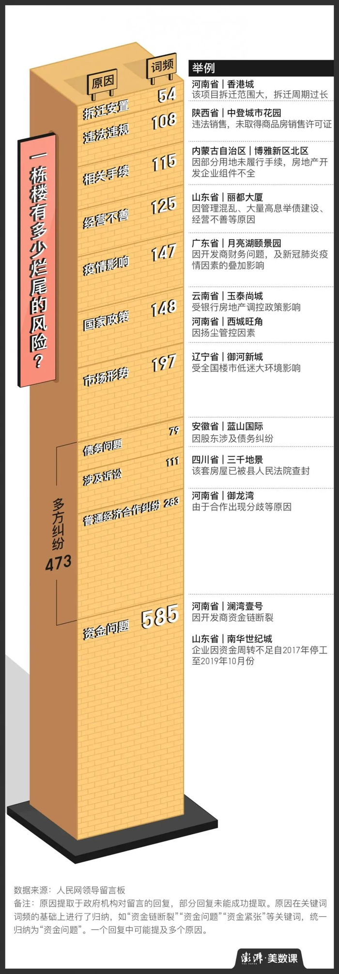有人要问,为何会出现烂尾楼?有人专门做过总结,主要原因有三类:
