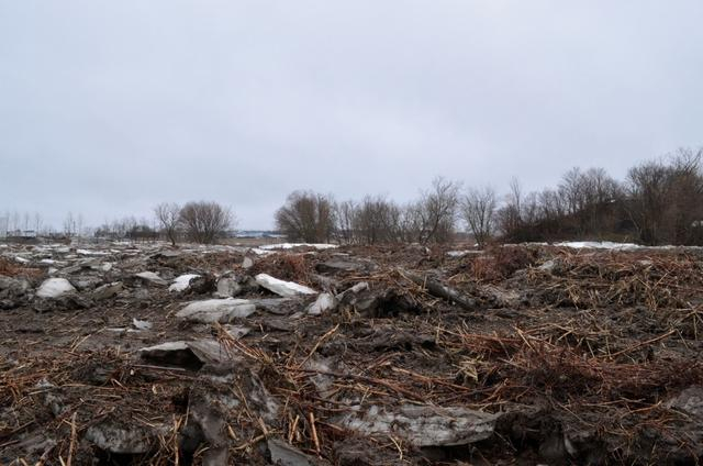 2019年加拿大魁北克省春季洪泛平原上的碎冰和枯死的虎杖茎。图源:参考文献 [6]
