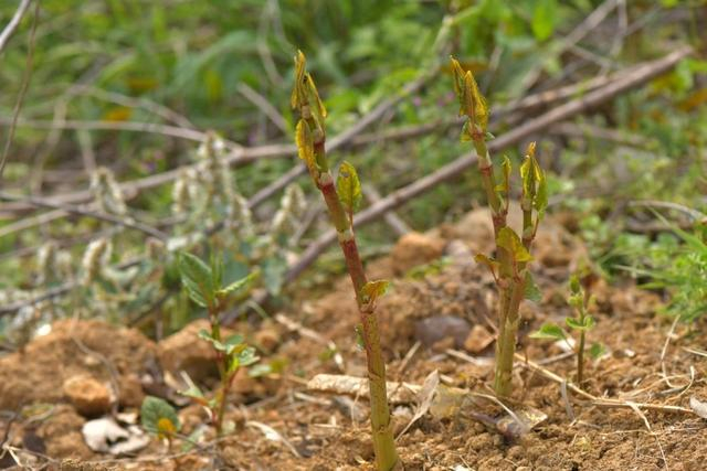 初春时节的荒地上,有时可以看见一根根身被紫红色斑点的“小竹笋”破土而出。