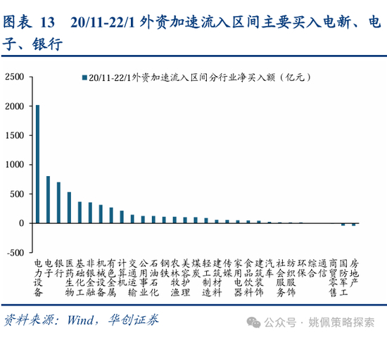 美联储降息或带动外资流入。除了对国内政策的预期以外,美联储降息对A股影响的另一个路径来自外资的流入。当美国市场的资金成本下降、流动性更加充裕时,海外投资者更有可能将资金转移到中国市场,2019年8月美联储开启降息周期后,外资流入显著加速,19年8-12月北上资金累计净流入2434亿元,月均487亿元,显著高于1-7月的155亿元。