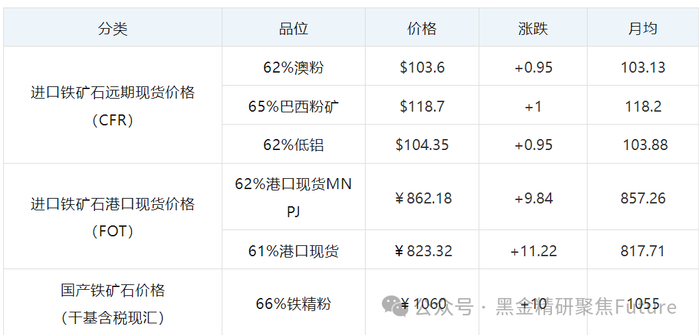 PB粉价格为790元 /湿吨, 环比每湿吨升+10元