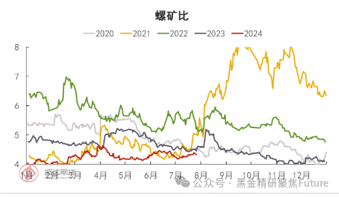 从宏观来看,美国上周初请失业金人数增加1.4万至24.9万人,创近一年新高,高于预期的23.6万人。美联储议息会议维持8月份利率不变的同时对于9月份降息的表述变得更加积极。从供应端而言,澳巴主流矿发运保持平稳,非主流发运增速预计明显放缓,整体供应压力减轻。需求端,建材需求有望持续修复,专项债和特别国债有望较快形成实物工作量。就铁矿石自身成本端来讲,当前通胀和开采成本上升,且非主流矿折扣比例较高,普氏铁矿指数若跌破 100 美元/吨,可能导致部分非主流矿山降低发运。当前铁矿石已回落至低位,下方空间有限,后市预计以底部盘整为主