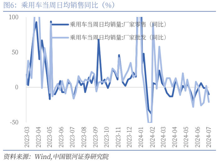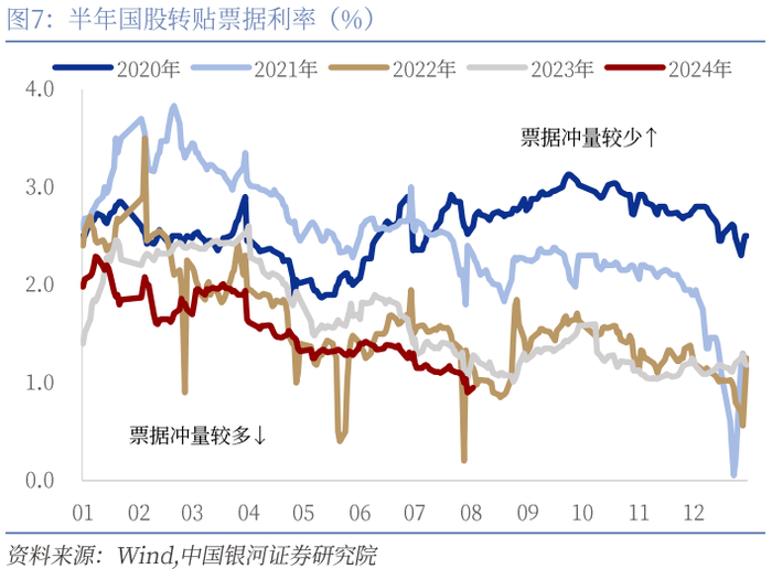 居民中长贷改善,企业信贷仍是稳定器,票据冲量现象可能依然存在。7月居民贷款预计约600亿元,其中短贷100亿元,中长贷500亿元。居民贷款同比多增,主要由于去年同期居民信贷当月减少2007亿元,基数较低。以旧换新政策在7月对居民短贷支撑有限,汽车销售高频数据显示同比仍负增长,消费者信心指数仍在低位运行,短贷依然不会强势。居民中长贷可能出现明显改善,30大中城市商品房销售套数同比-8.7%,跌幅比6月(-17.3%)明显收窄。7月,二手房销售改善更为明显,十个城市的二手房销售面积同比增长37.8%。7月企业贷款预计约4500亿元,其中短贷-2800亿元,中长贷4000亿元,票据融资3300亿元。石油沥青装置开工率处于历史低位、水泥发运率下行,基建可能尚未提速。7月票据利率处于较低水平,月末快速下行,票据冲量现象可能依然存在。