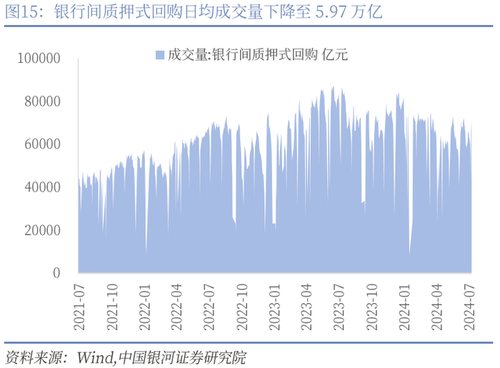 银行间质押式回购日均成交量下降:从上周的约6.4万亿下降至约5.97万亿。